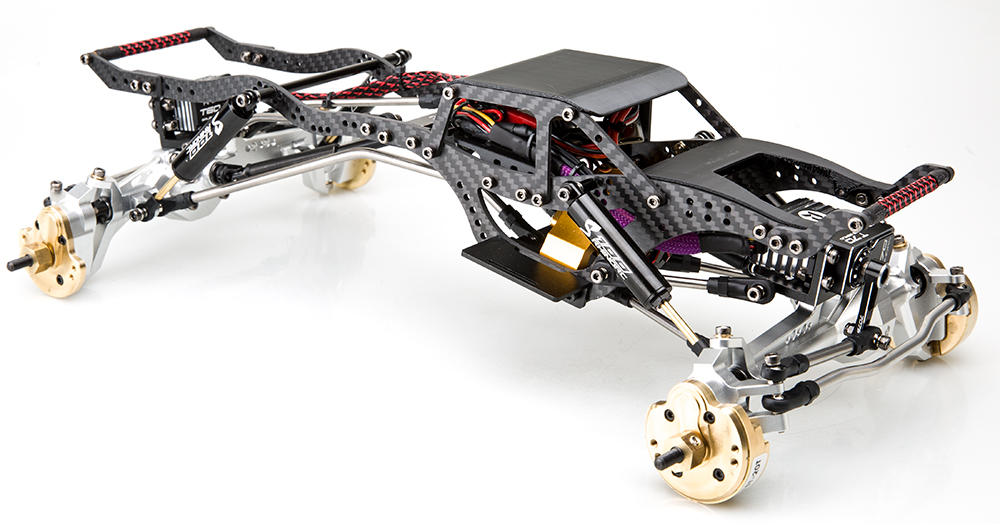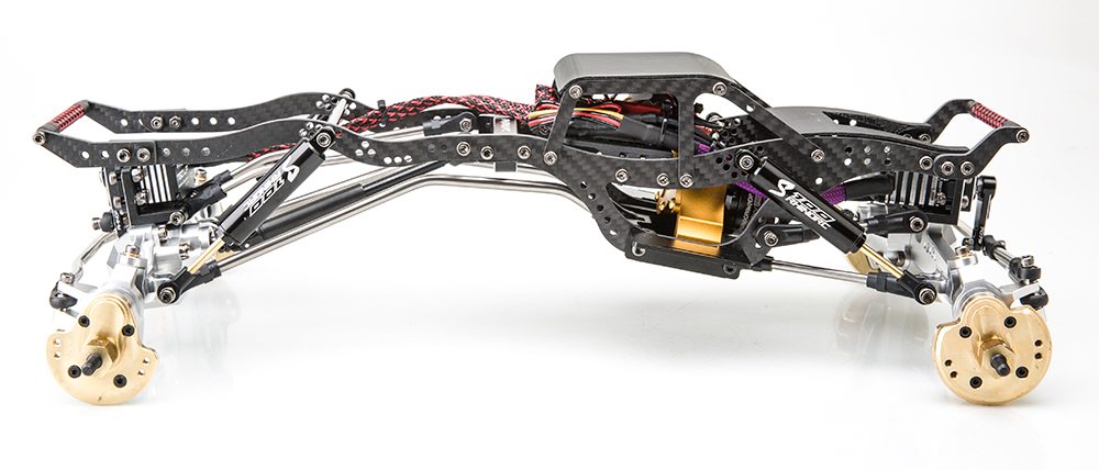 CNC Machined Aluminum Axles,billet aluminum case with hardened steel gears, full ball bearings,Suspension: 4 link front and rear, solid titanium links.Chassis: Carbon fiber.