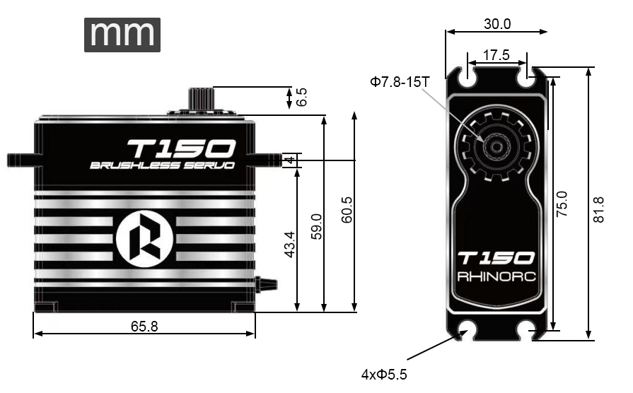 RhinoRC T150 Ultra-Fast Response, Precision Control: 333Hz refresh rate, 2μS deadband, and digital signal mode ensure lightning-fast, accurate responses for high-precision applications.