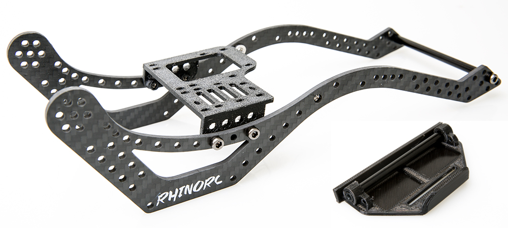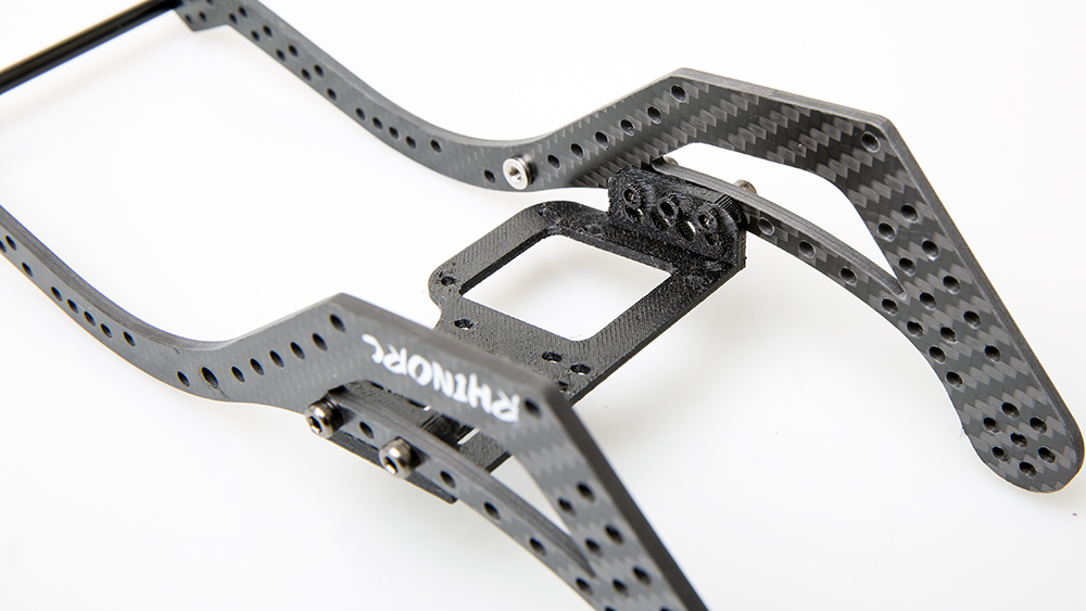 The RHINORC YUE W1 LCG Chassis design base on YUE ONE&LCG, made of high-quality carbon fiber material and titanium alloy link. It has many shock mounting points for better suspension tuning. Change the layout of the car, create stronger climbing ability, special angle design increases the ground clearance, making the vehicle have excellent passability. In addition, the body has chosen 3.0mm full carbon fiber board, and the high-strength body brings safer driving for extreme movements.